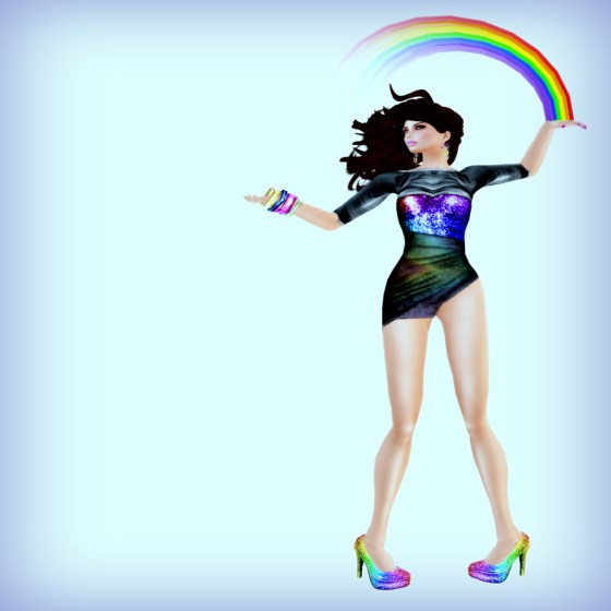 I felt like having fun with colors today. PatchWork Heart has a sassy lil dress over at Acid Lily. It comes with the sparkly heels, but sorry…have to get your own rainbow 😉 The Sparkle dress comes in purple too, but again…needed a little color in my life 😀