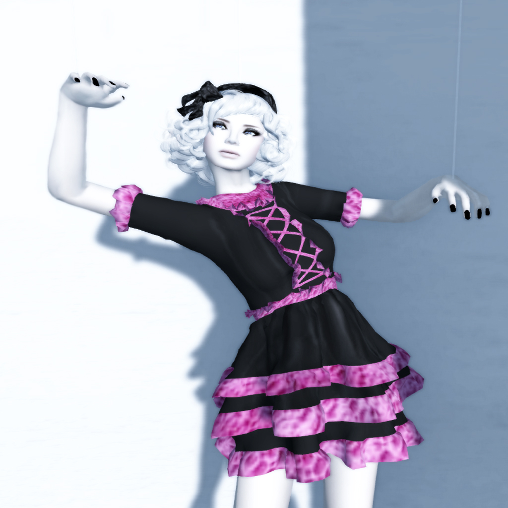 Hinako has some adorable creations over at Acid Lily this week. The Leilani Silver hair is sugar sweet and comes with a built-in color change for the bow. Personally, I love black and pink, so the Gothic