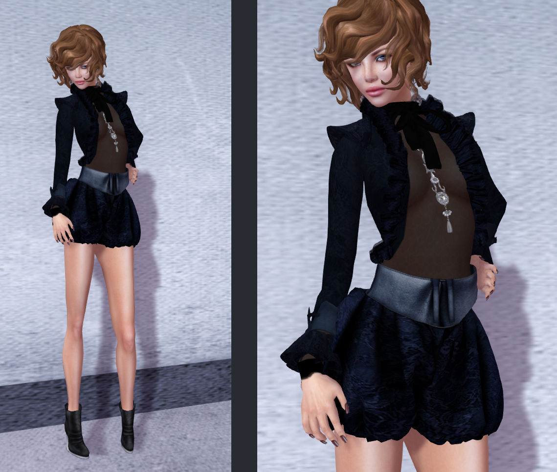 This time of year, the weather is so fickle in my part of the world. It’s hot one moment and chilly the next. Often dressing in layers is a way to combat indecisive weather. LIV Glam’s Metradamo is a chic design that keeps dressing in layers in mind. It comes with a sheer top and crop jacket ( I added the bow tie from another LIV Glam ensemble), and mesh balloon shorts.