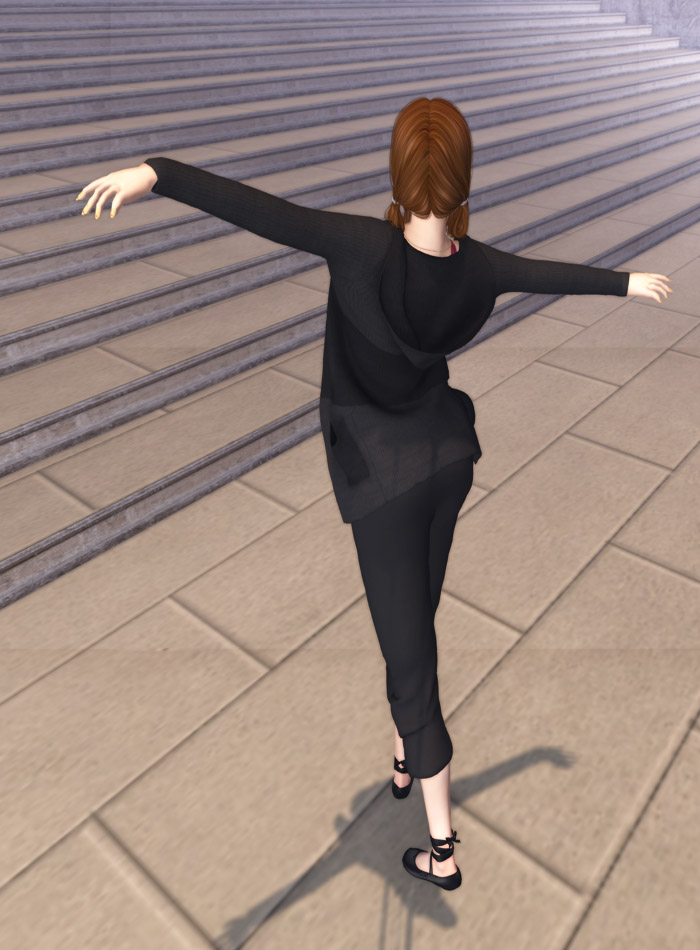 The mesh hoodie has a subtle pattern and the mesh capris are comfortable enough to dance in. I like to keep it casual in both my lives. If you do too, pick up Just Another Day for yourselves.