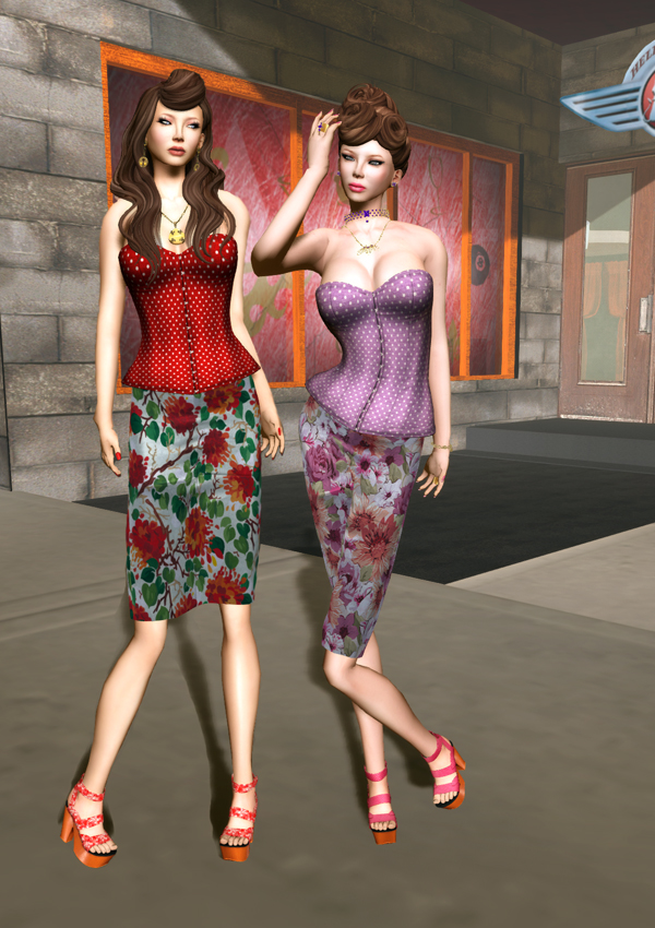 It’s Acid Lily Monday! Each week, Acid Lily offers a brand new showcase featuring designers all over the grid. I like to mix up my patterns, so I paired Candy Metal’s corset tops and platform shoes with Color Insane’s slim mesh skirts. I love platform heels! The skirts come in other colors and patterns too.