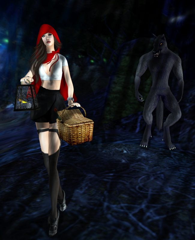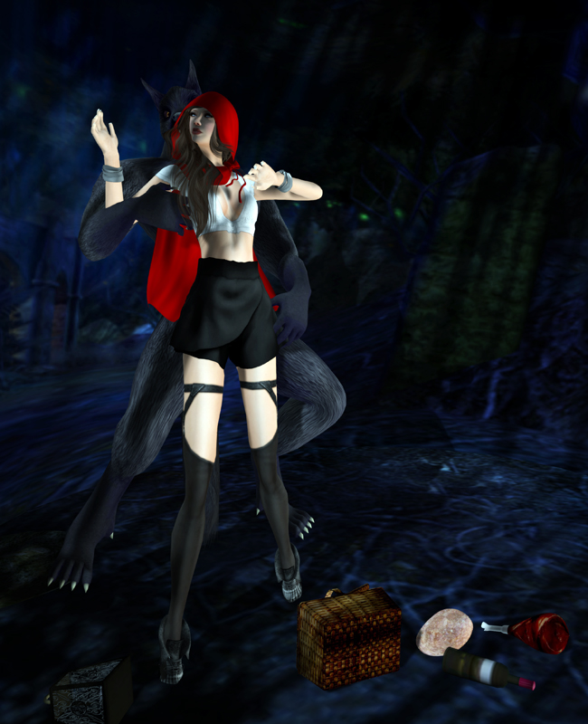 The pose set has a variety of poses to chose from and it’s two characters. I chose to just go traditional Little Red Riding Hood and that big bad wolf.