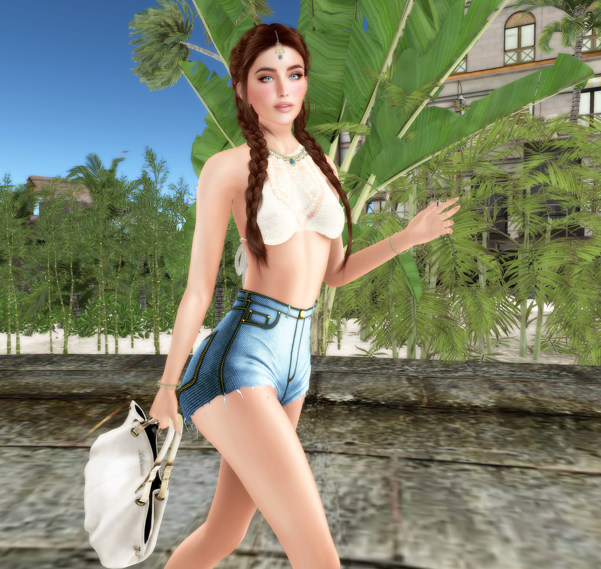 Outfit: AsHmOoT_J CoLL_Fringed Shorts #03 & Crochet T/C @Designer Showcase