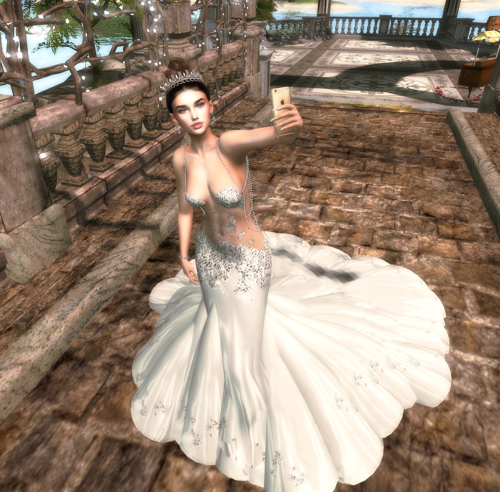 Outfit: Sascha’s Designs Tempest Wedding Gown w/Crown Hair: DOUX – Brianna Hairstyle Avatar: LeLUTKA.Avalon 3.1 and Maitreya Lara Skin: [the Skinnery] Jeanne (LeLutkaEVOX) Makeup: Dernier : Dernier : “Ahri” Highlighter #3 & Dernier :Dernier: “Amy” Lipstick #1 (50% Opacity) Jewelry: Heartsdale Jewellery Girl’s Best Friend Earrings & The Ice Queen Platinum Bracelet (Right) and Moondance Boutique Always Cherished Wedding Ladies Band L Accessories: Secret Poses – Cellphone Pose: DelMay “Me with you in my rearview” Location: From This Moment