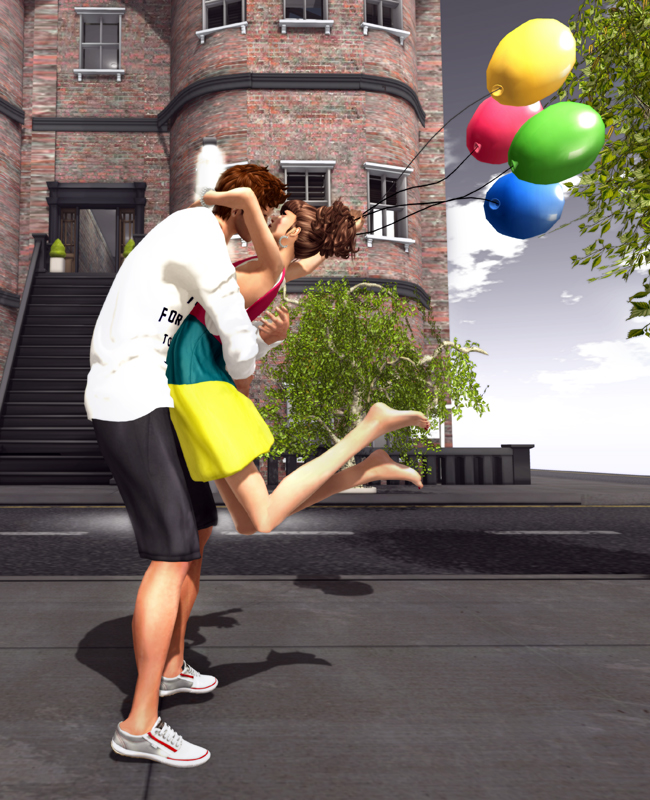 You can find this pose at Pose Fair 2013. I had to hijack my boyfriend’s SL avatar to create this picture and it inspired me so much, I asked him to surprise me with balloons. Still waiting 😉 Want to capture your love in a photo? Make sure to head out to Pose Fair! Click here for your lift.